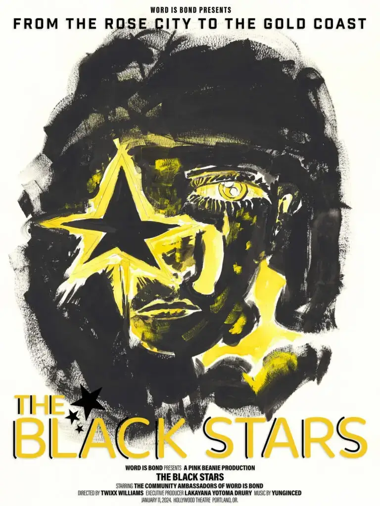 The Black Stars Documentary, directed by Twixx Williams and Executive Produced by Word is Bond founder and Executive Director Lakayana Drury, is Word is Bond’s debut film. Premiering in January 2024 to a sold-out crowd at the historic Hollywood Theatre in Portland, OR, the film follows the journey of the inaugural Black Star Homecoming Expedition in 2023.